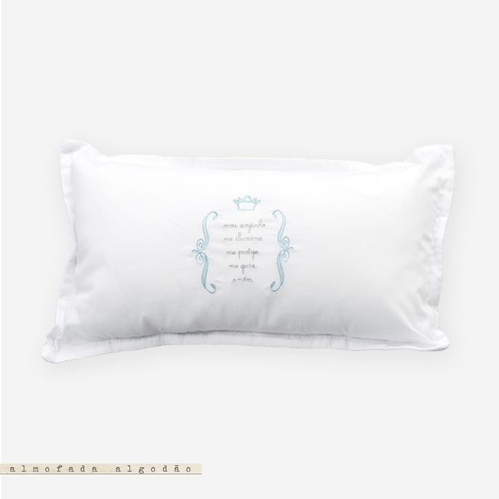 Almofada em tricoline 100% algodão, bordada, forro removível e enchimento com espuma siliconada.
