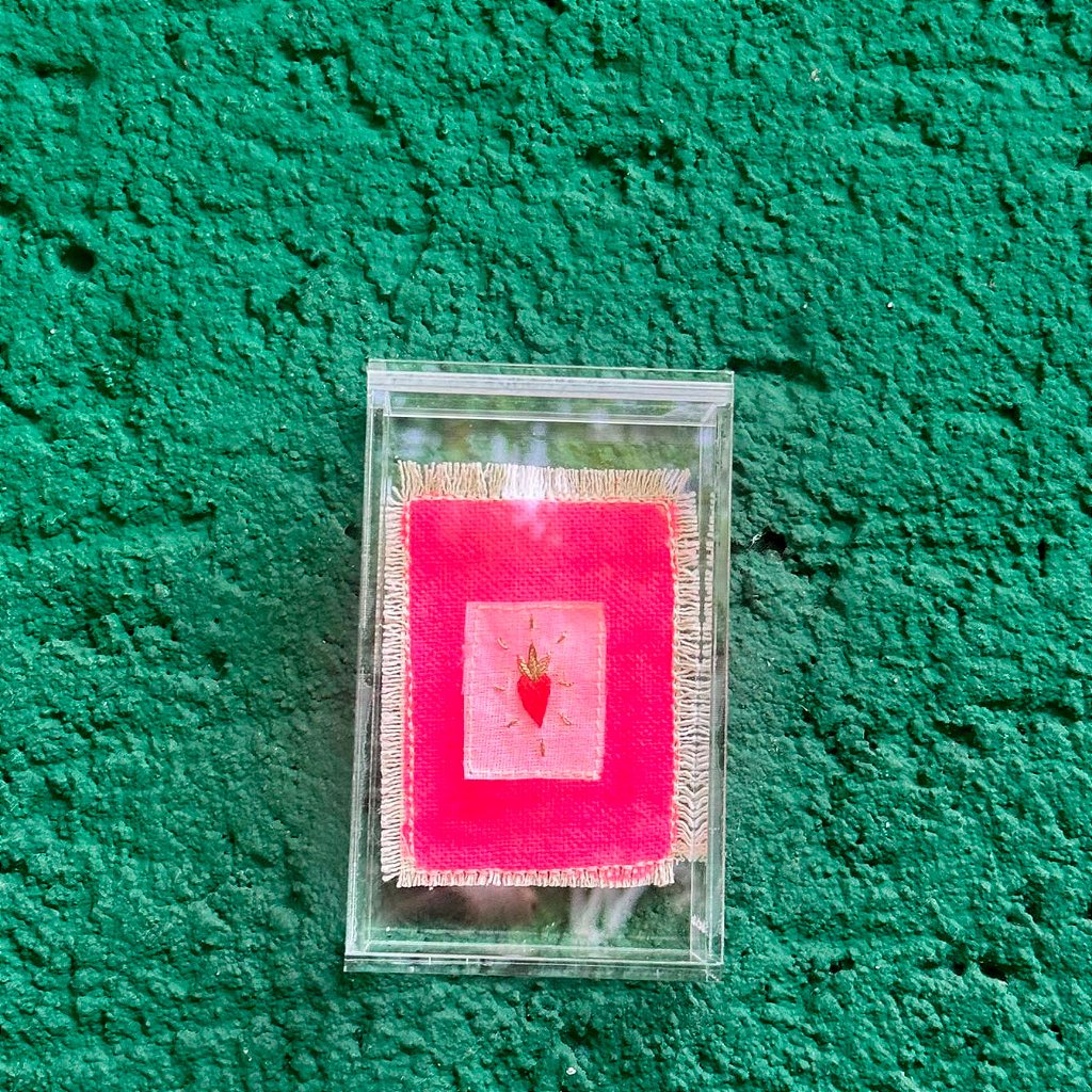A Caixa Acrílica Heart - Pink é uma peça encantadora que combina delicadeza e vibrante expressão. Com base em tecido rosa vívido, destaca um coração bordado em vermelho com detalhes dourados de rajadas de luz, simbolizando amor, energia e intensidade.