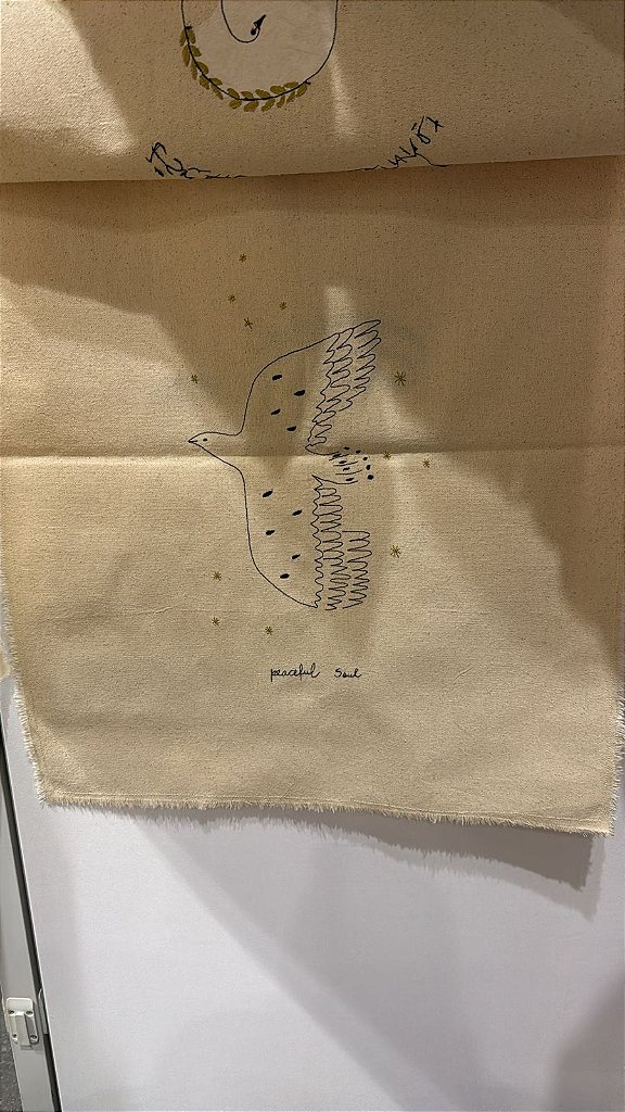 O Canvas Peaceful Soul é uma peça única que irradia serenidade e delicadeza, trazendo o equilíbrio perfeito entre arte e poesia. Feito à mão em tecido cru, o canvas apresenta o bordado de uma ave em pleno voo, símbolo de liberdade e calma, acompanhado da frase bordada "Peaceful Soul", que transmite a mensagem de tranquilidade e conexão com a essência.
