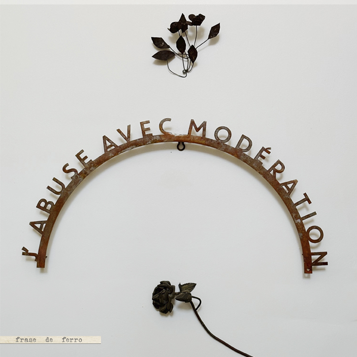 A Frase de Ferro – J’abuse avec modération (“Exagero com moderação”) é uma peça que mistura poesia, humor e elegância — um toque francês que transforma qualquer parede em um gesto de leveza e estilo. Feita artesanalmente em ferro envelhecido, carrega o equilíbrio perfeito entre a força do material e a suavidade da mensagem. É um convite à vida com graça e prazer, a celebrar o cotidiano com um sorriso: abusar daquilo que é bom, mas sempre com delicadeza.