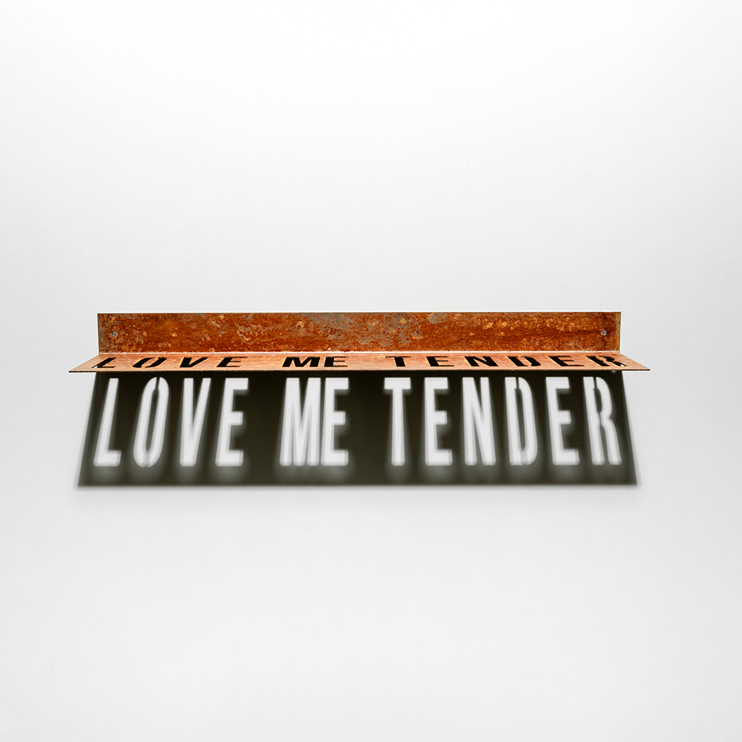 Peça de ferro envelhecido. Dependendo da posição da luz cria sombra na parede.