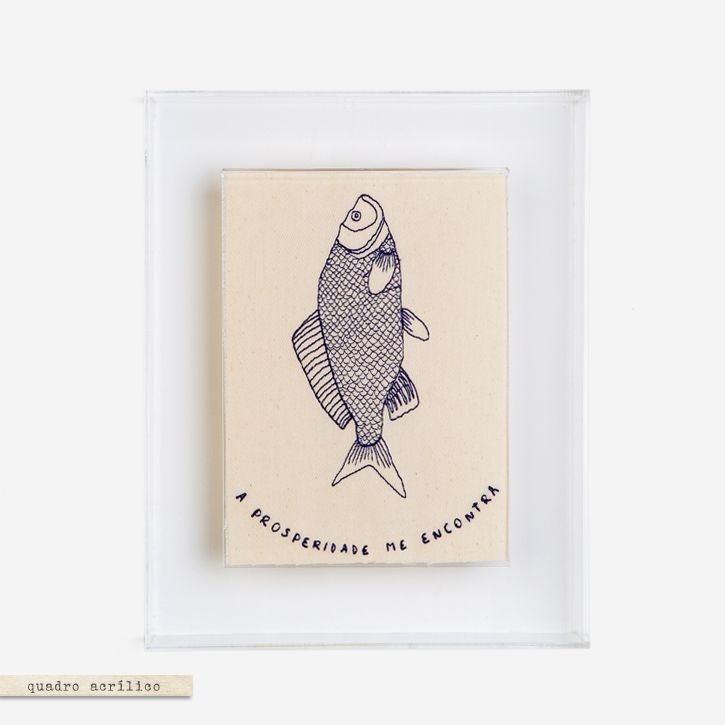 Quadro de acilíco com tecido bordado e a frase "A prosperidade me encontra".