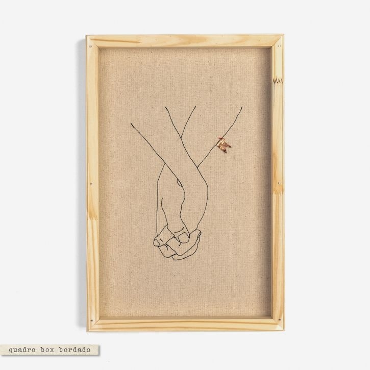 Feito em madeira de reflorestamento, bordado, bandeira de cobre e moldura em acrílico.