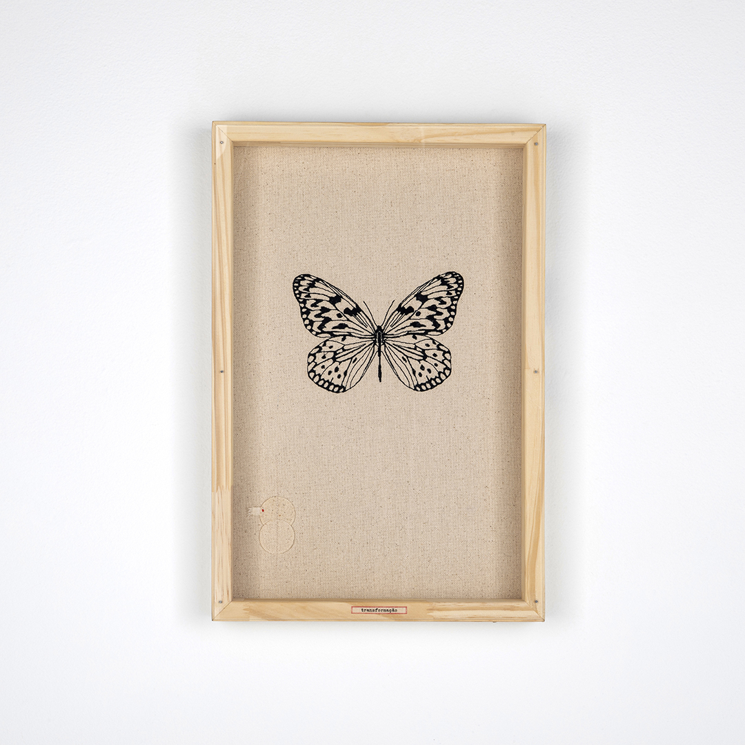 Feito em madeira de reflorestamento e colagem 3D e moldura em acrílico.