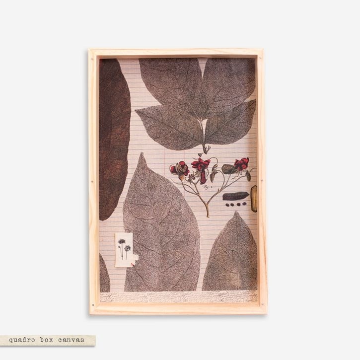 Quadro Canvas bordado com moldura em madeira de reflorestamento e acrílico.