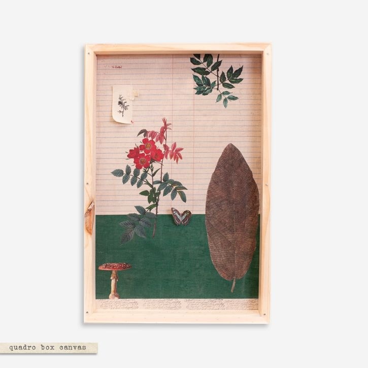 Quadro Canvas bordado com moldura em madeira de reflorestamento e acrílico.