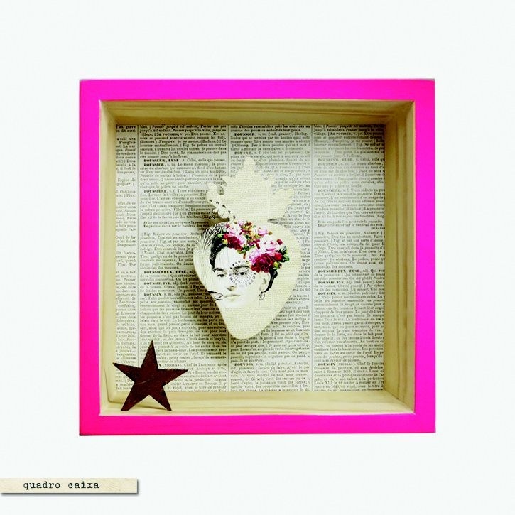 Quadro de madeira pinus com borda pink, coração estampado e estrela em ferro.