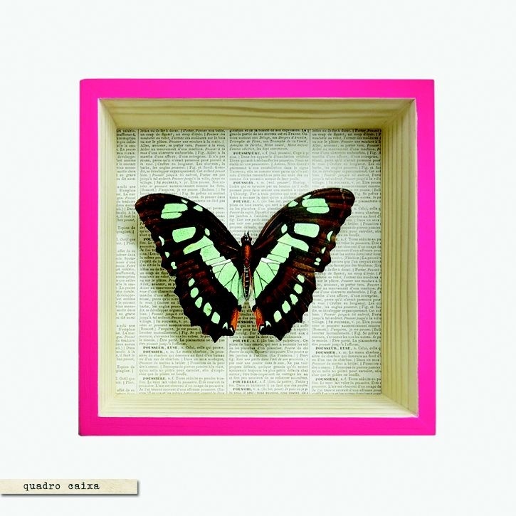 Quadro de madeira pinus com borda pink e borboleta impressa em 3D.