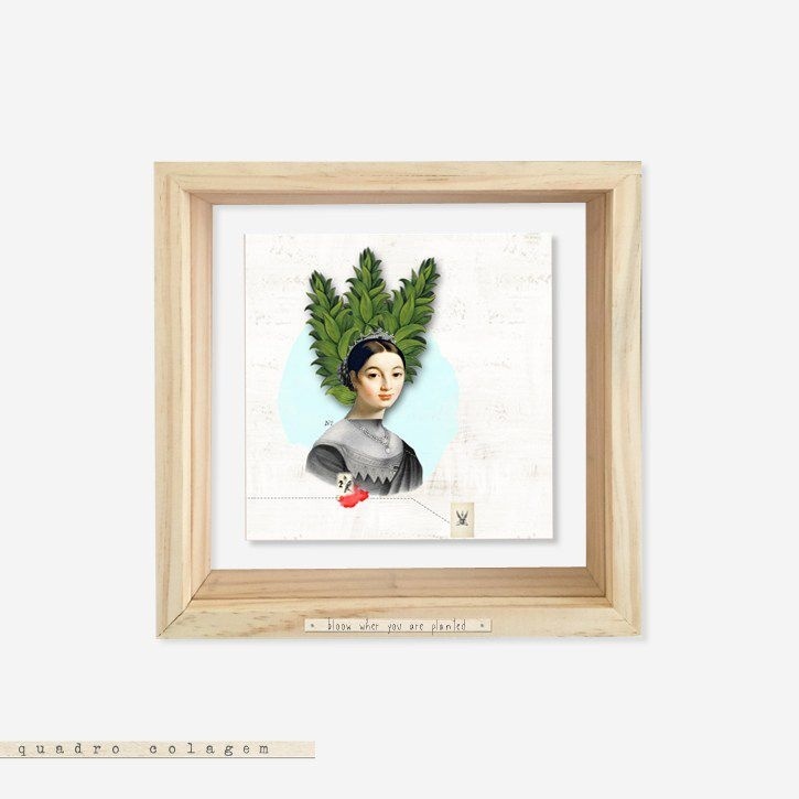 Quadro Caixa Pinus e Acrlico Colagem - Bloom where you are planted