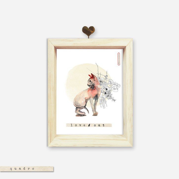 Quadro Caixa Pinus - Love Cat