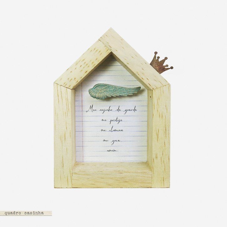 Estrutura em madeira Pinus no formato de casinha, asa aplicada e escutura de ferro.