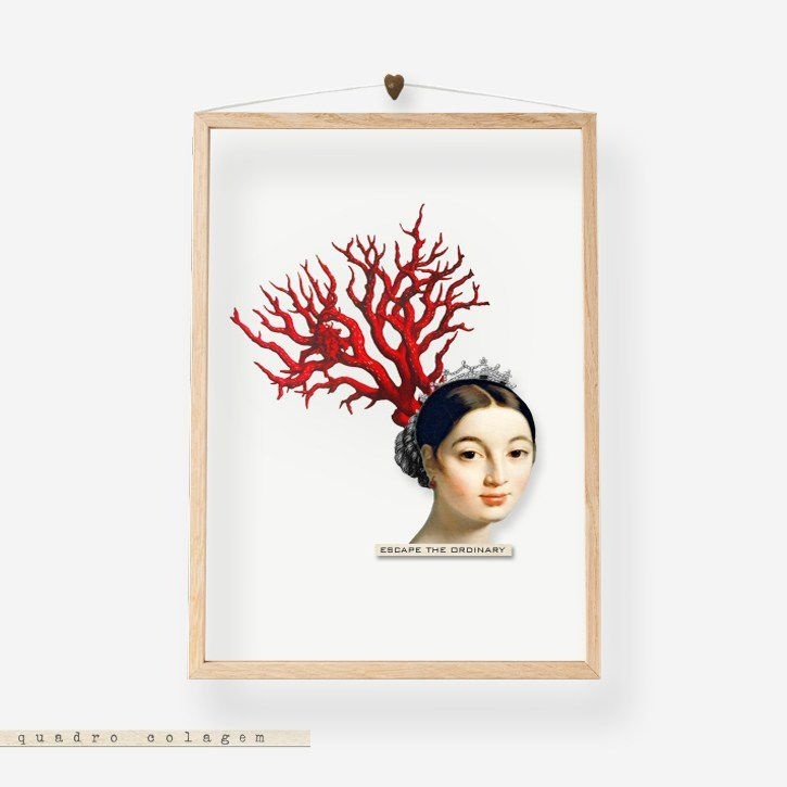 Quadro em madeira com moldura desmontável, elástico e duas chapas de acrílico com colagem entre elas.