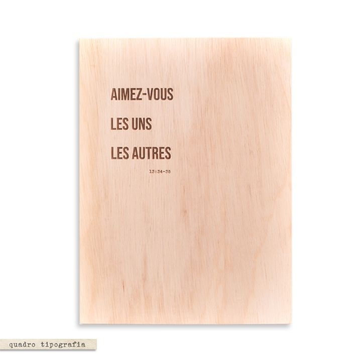 Quadro de madeira com letras gravadas. Uma peça simples e com muita personalidade para a sua parede.