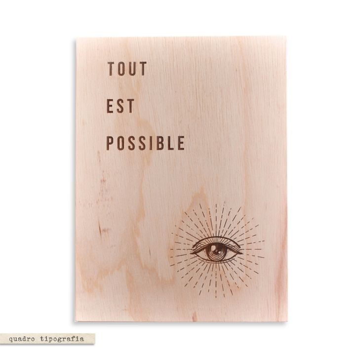 Quadro de madeira com letras gravadas. Uma peça simples e com muita personalidade para a sua parede.