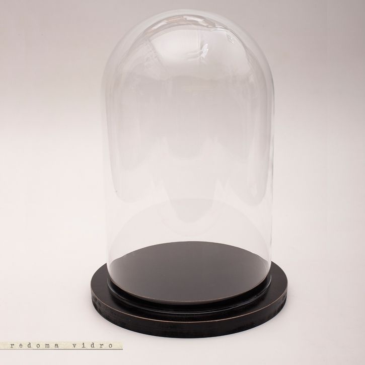 Redoma em vidro com base em MDF preto.