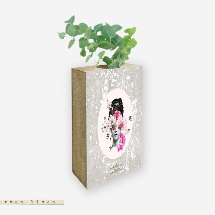 Vaso em MDF com um recipiente para colocar água e a sua flor preferida. Tem um furo na parte posterior e pode ser colocado na parede ou ficar apoiado.