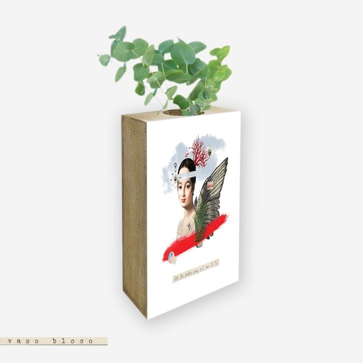 Vaso em MDF com um recipiente para colocar água e a sua flor preferida. Tem um furo na parte posterior e pode ser colocado na parede ou ficar apoiado.