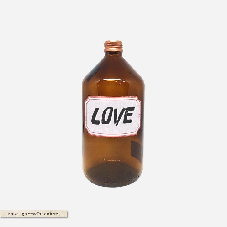 Material: Garrafa de vidro com detalhe de pintura cobre e etiqueta de tecido.