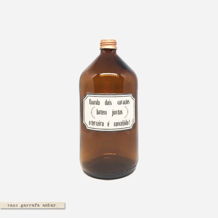 Material: Garrafa de vidro com detalhe de pintura cobre e etiqueta de tecido.