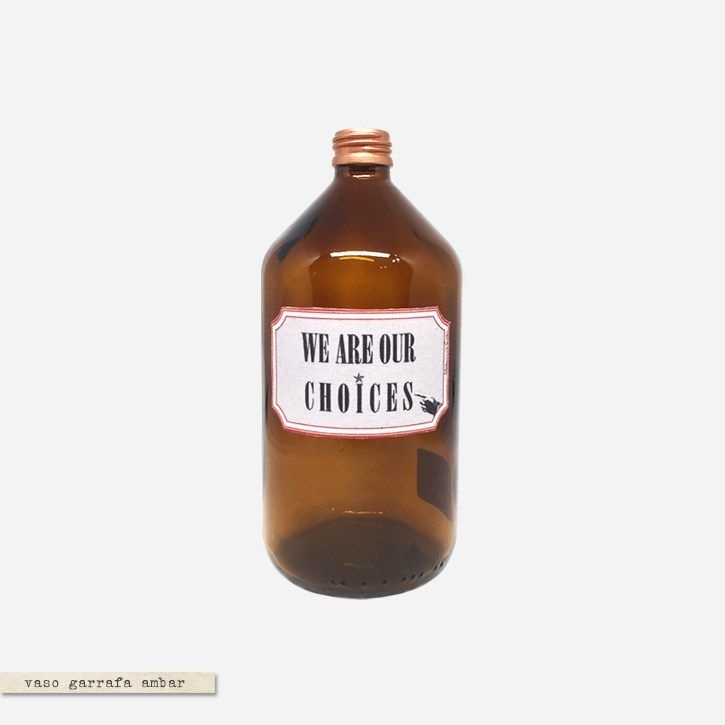 Material: Garrafa de vidro com detalhe de pintura cobre e etiqueta de tecido.